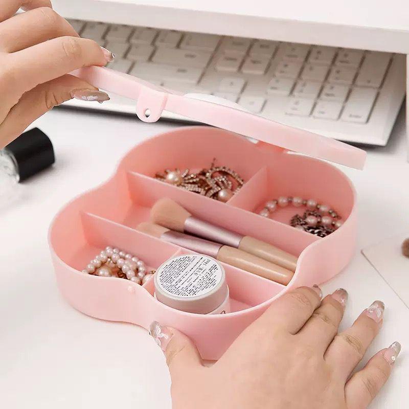 A cosmetic box with a cute clover shape. There is a mirror on the lid, so it’s perfect for makeup! It is also recommended as an accessory box